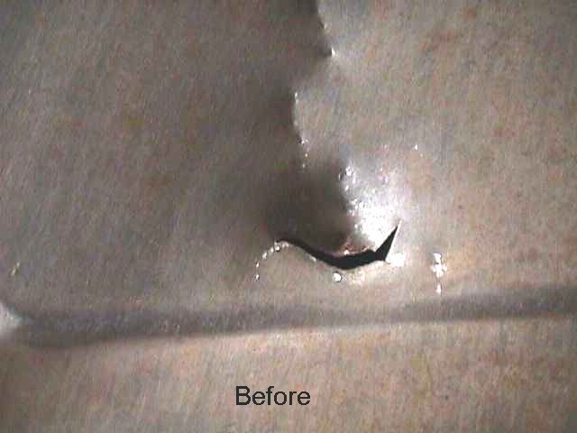 a hole in the epoxy at a place where the tank had a sharp bend