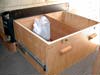 Then I installed some heavy duty hardware, in my case 140# load bearing full tension guides, and make a drawer that fit snugly under the dinette. I did cut off the metal brace on the back of the dinette but inserted 2" angle iron brackets on the sides of the dinette to fasten it to the floor.