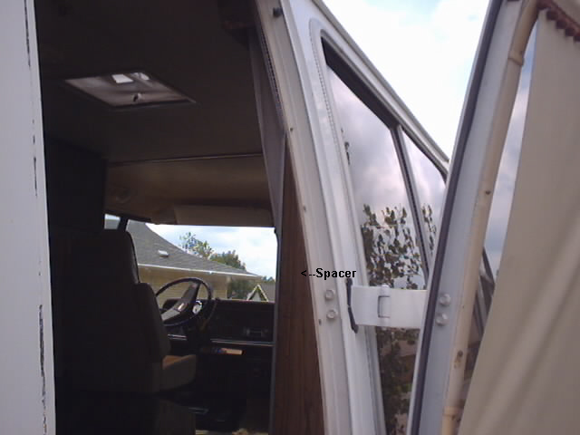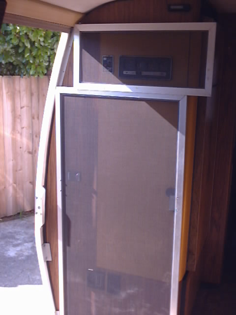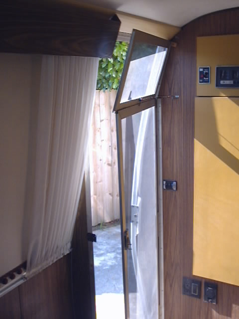 such as an inward opening screen door that folds flat against