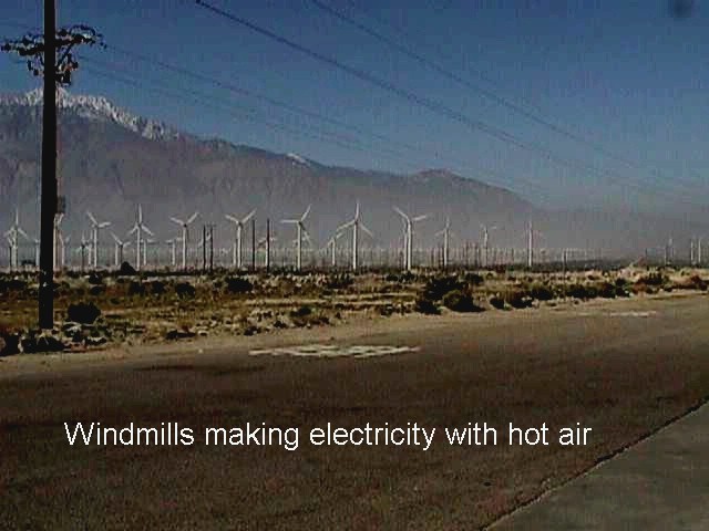 I Headed east to Emerald Desert Gulf & RV Park at Palm Desert, CA. It looks to me like they are going to try to solve the electricity problem in CA with hot air, or cold air that is moving. They have a whole lot of windmills and a lot more being built along I-10 on the way over here. I did find the temps I have been looking for since January, day time up in the 80s. Its wonderful but I sure dont need the gulf course here at the RV park, I have only played 9 holes of gulf in my life and that was a long time ago with my one armed brother and he beat me so I figured it wasnt my game. The food, seminars and entertainment have been outstanding. I even got a piece of tail on Tuesday evening after the business meeting. The tail came from an eight foot alligator in Florida and was hauled here by the crew from Cooperative Motor Works in Orlando, FL. They also cooked it and it was delicious. It has a flavor all its own but it reminded me of the first time I ate frog legs sixty some years ago. On a boy-scout camping trip we caught frogs and cooked their legs like hot dogs over a camp fire. It was some of the best food I ever ate. The only wild game Ive eaten and would not go back for seconds was a wild duck. It tasted just like marsh mud smells.