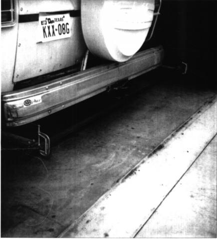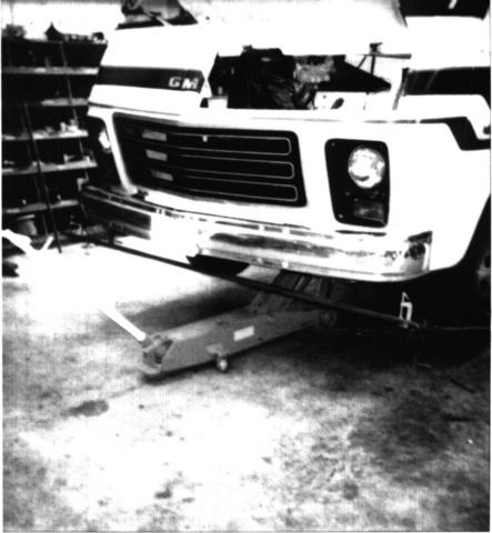 Clamp 2 short sections of 5" channel iron to the bottom of the front bumper. Clamp the front board with the center of the board aligned with the joint in the center of the front bumper.