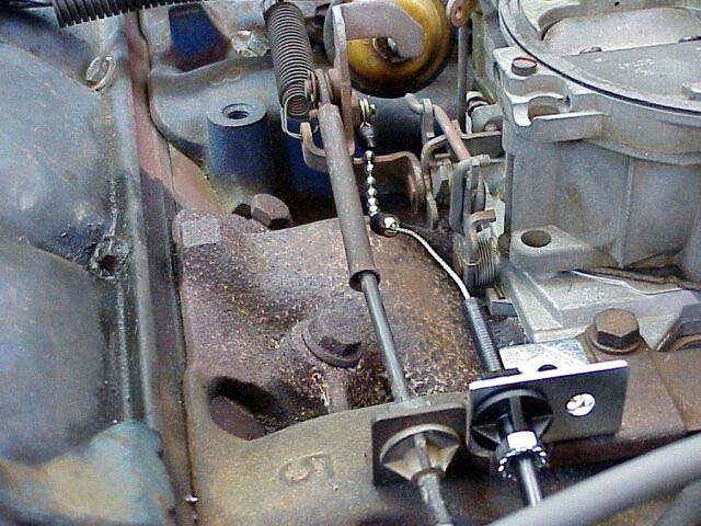 throttle linkage plate was drilled and nut and bolt used to mount new "square hole" bracket next to throttle cable.